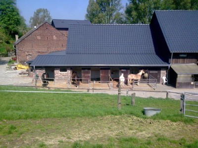 Unsere Innenställe verfügen über ausreichend Licht und Frischluft. Dafür sorgen an der Außenseite des Stalles große Fenster, die auf den Teich gerichtet sind. Die Boxen an der Innenseite des Stalles erhalten einen guten Luftaustausch durch offene Rückwände zur Tenne.
